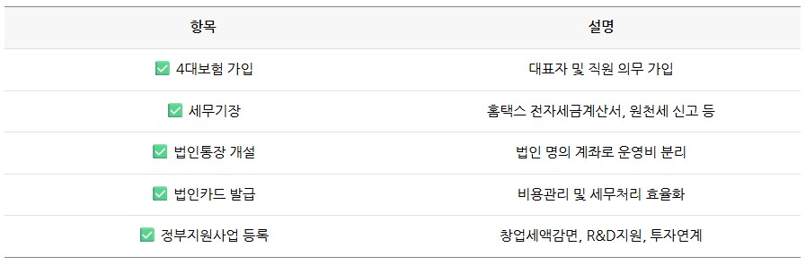 8️⃣ 법인설립 후 꼭 해야 할 일