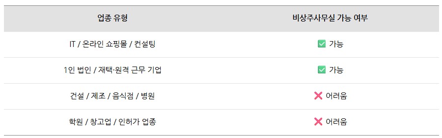 위 업종에 해당하더라도 실제 사업 방식에 따라 비상주사무실 사용이 가능한 경우도 있습니다.