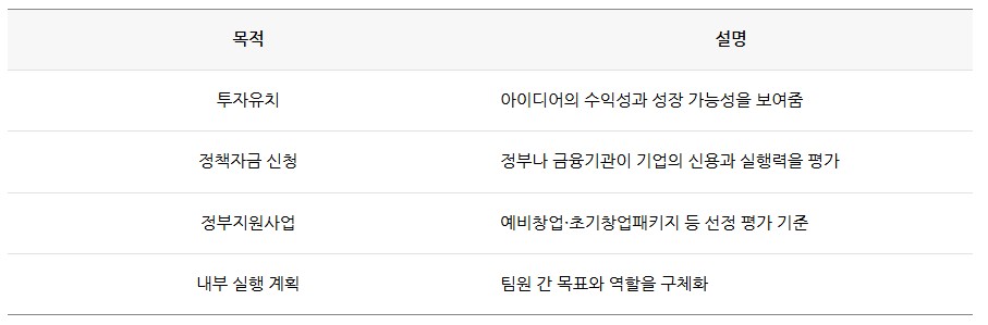 즉, 사업계획서는 ‘아이디어를 숫자와 실행으로 증명하는 문서’입니다.