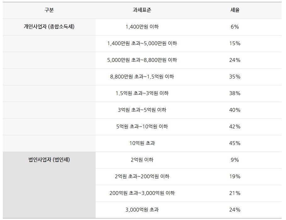 법인세는 일정 구간별로 완만하게 적용되므로, 이익이 5천만 원 이상이면 법인 구조가 유리해집니다.