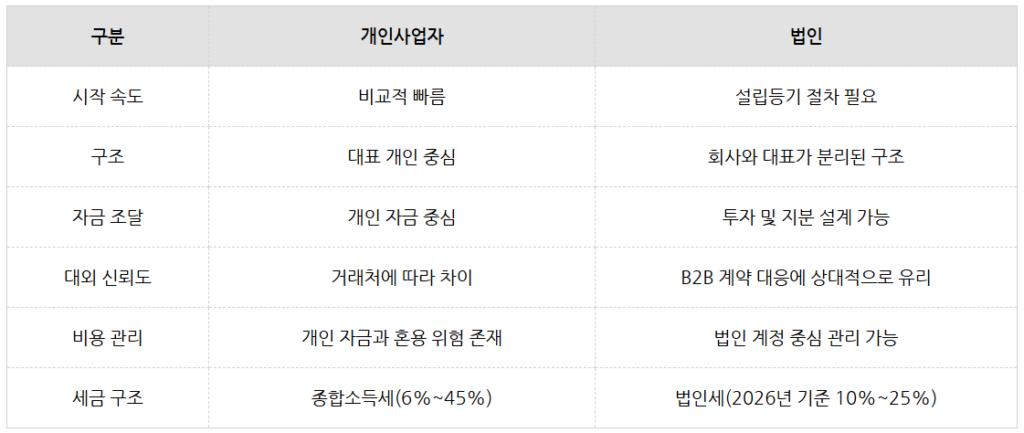 그래서 단순히 시작이 쉬운 방식만 보기보다는 앞으로의 사업 구조에 맞는 형태를 선택하는 것이 중요합니다.